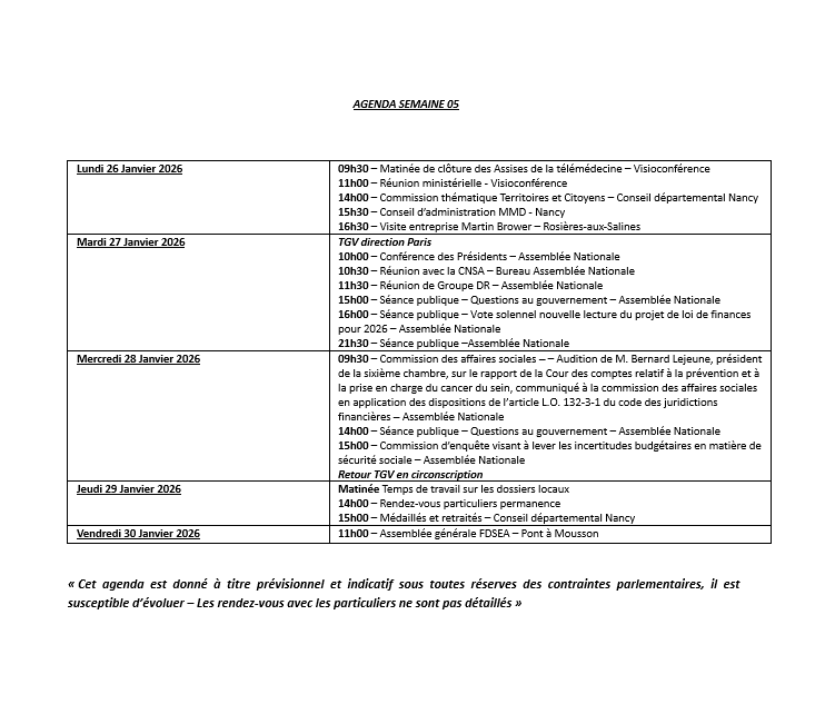 26 janvier 2026 Agenda 0
